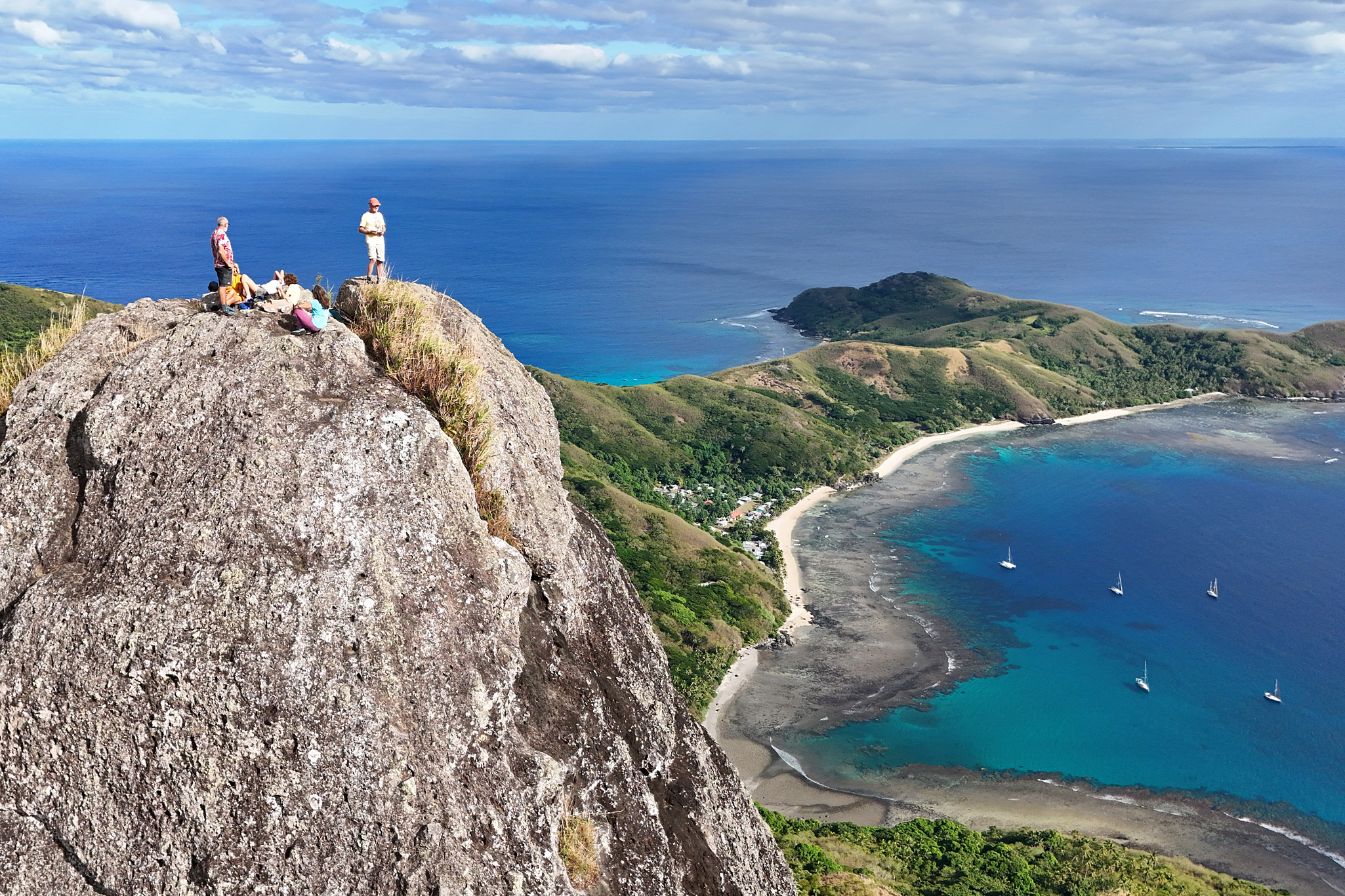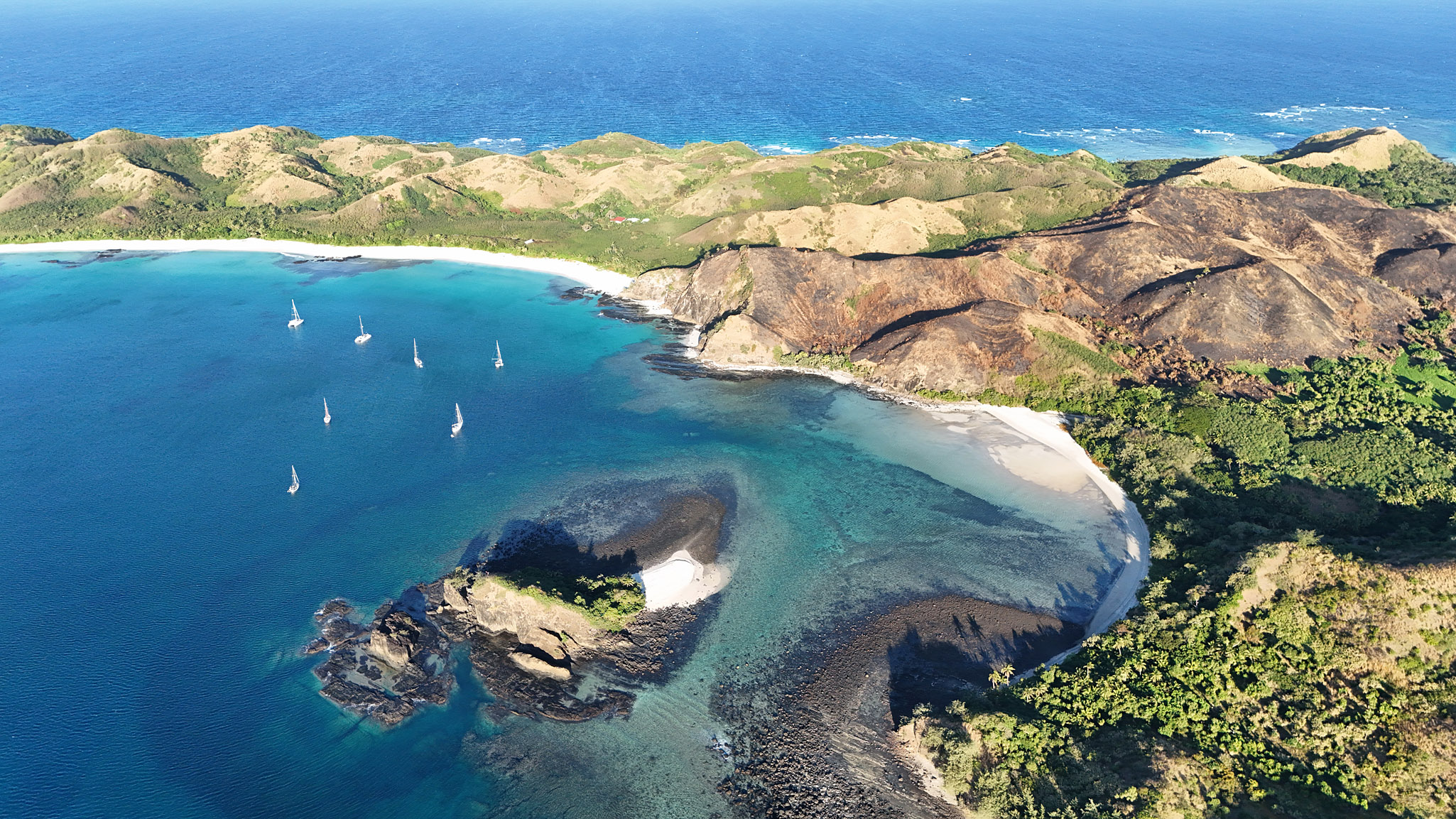 Vier Wochen lang segeln wir mit Freunden aus der Heimat durch die traumhaften Yasawa-Inseln im Westen von Fidschi. Der Archipel ist ein wahres Urlaubsparadies: kurze Distanzen, traumhafte Strände, glasklares Wasser. Wir wandern über steile Inselpfade, schnorcheln über bunten Korallengärten, schlürfen Espresso Martini im Barefoot Resort, genießen traditionelles Erdofen-Essen, sitzen beim Lagerfeuer am Strand und bestaunen Sonnenuntergänge, die manchmal sogar im legendären „Green Flash“ gipfeln. Ein Naturphänomen, das als grüner Blitz aufleuchtet, wenn der letzte Sonnenrand hinterm Horizont verschwindet. Nur einmal pro Woche sorgt eine Schlechtwetterfront mit westlichen Winden für Nervenkitzel. Dann wünscht man sich in den Yasawas mehr als einen rundum geschützten Ankerplatz (Blue Lagoon).