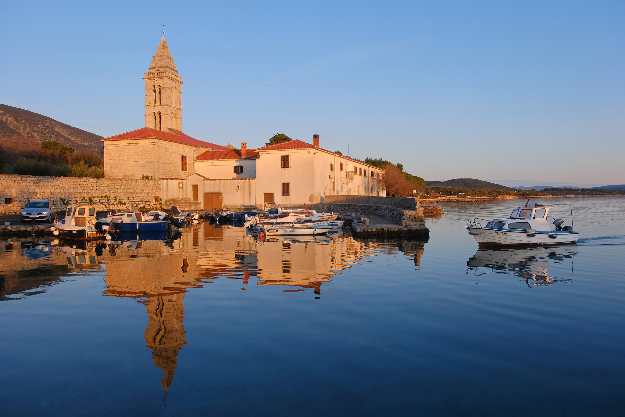 Für das richtige Nachsaison-Gefühl braucht es allerdings ein wenig Übung. Zum Beispiel: in die Landschaft oder aufs Meer starren, zu verwaisten Häfen spazieren, die putzigen Fischerhäuser von Pogana bewundern – und sich bewusst machen, wie voll es hier im Sommer sein wird. Ich mag Orte ohne Touristen, wenn sie ihr echtes Gesicht zeigen: rostige Scheibtruhen, Wohnwägen ohne Räder, abgedeckte Boote. Dazwischen blühender Stechginster, Bäume voll Zitronen und Orangen. Einfach herrlich.